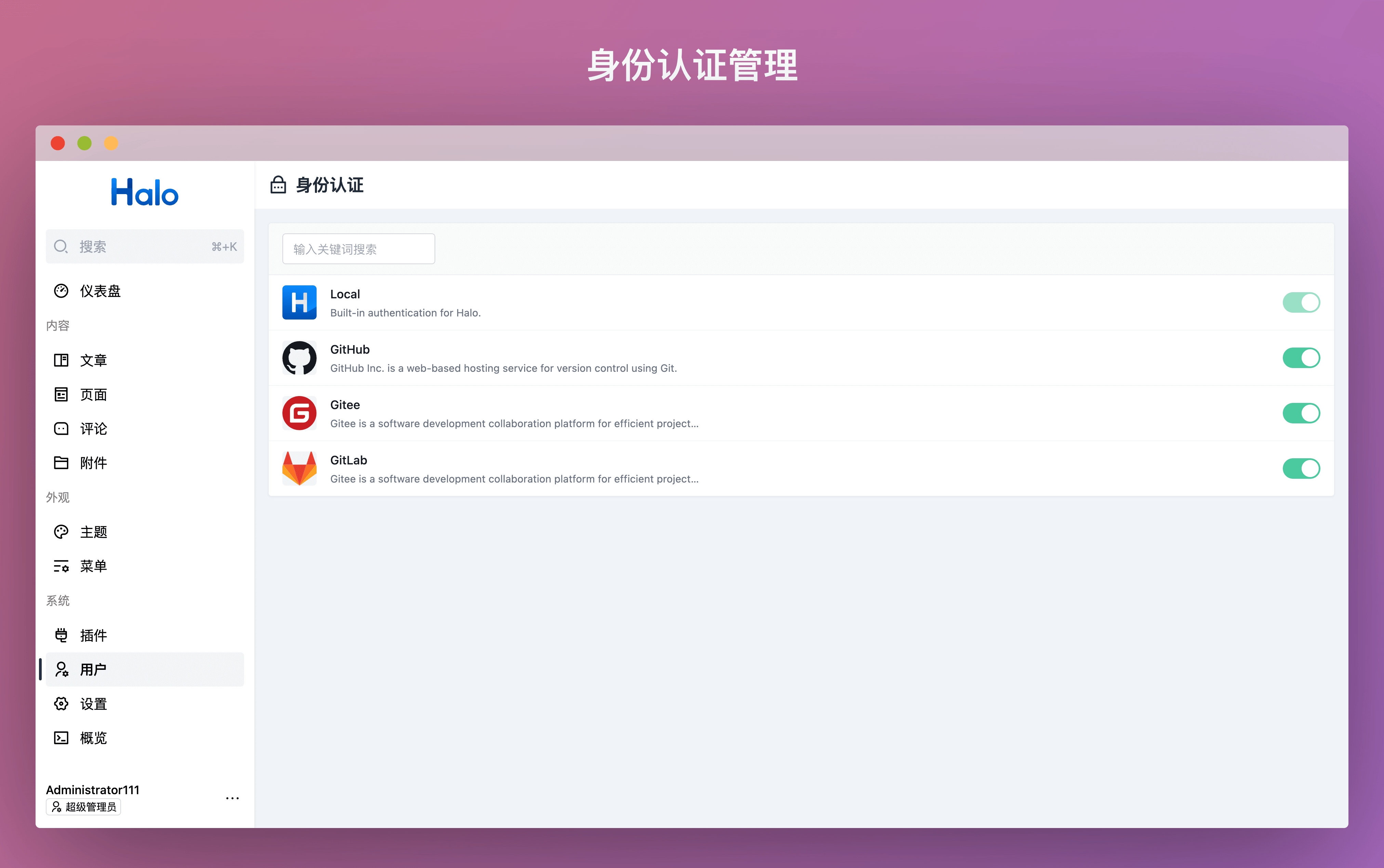 在这一版本中,Halo 主要支持了扩展第三方登录方式以及管理端的多语言功能,并带来 30 多项的功能更新和问题修复,非常感谢大家的反馈和支持。此外,我们在三方认证的扩展基础上提供了一个开源的 OAuth2 插件,目前支持接入 GitHub、GitLab、Gitee 平台的三方认证登录,欢迎大家体验。