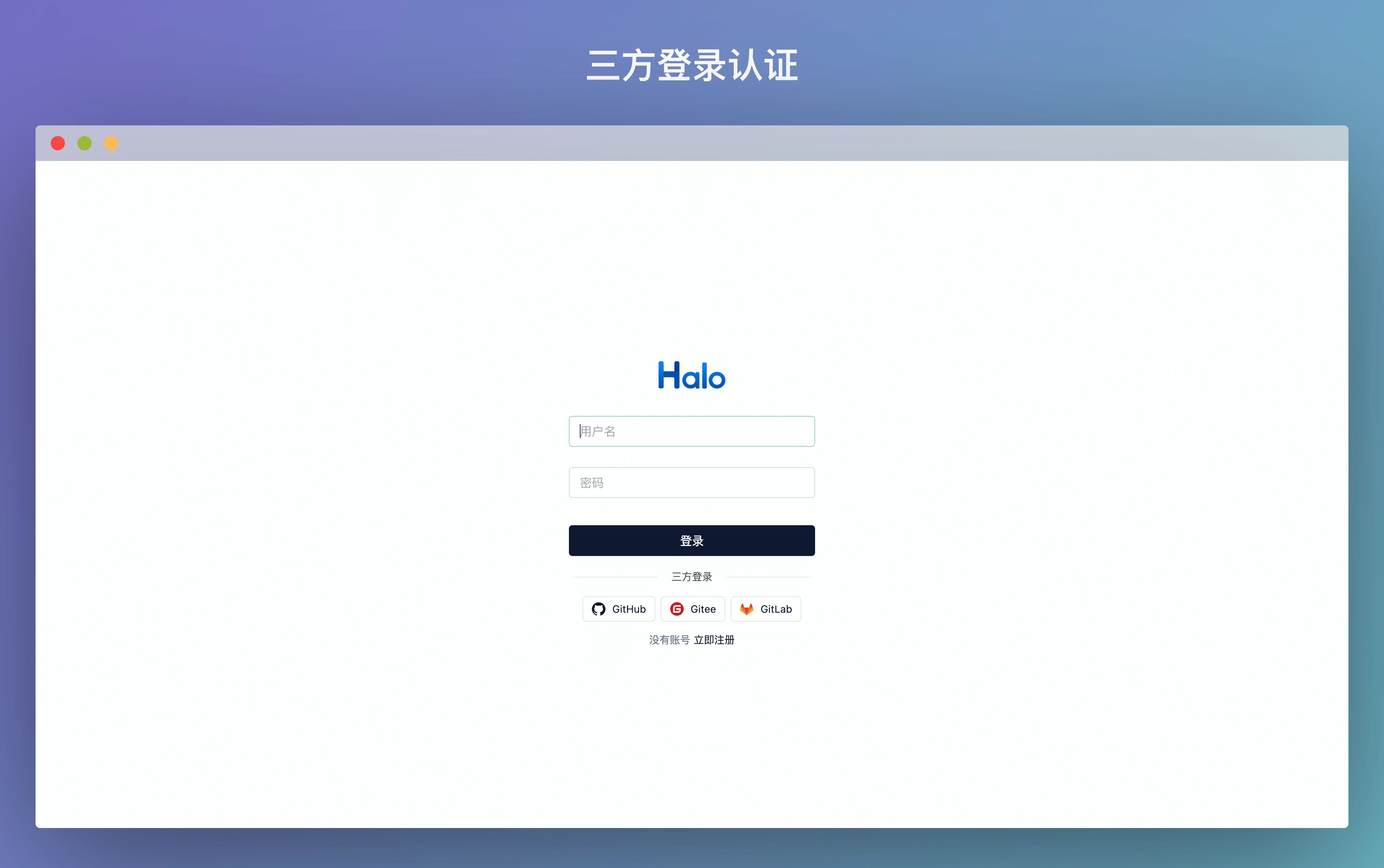 在 Halo 2.4.0 中,我们提供了扩展第三方登录的能力,开发者可以基于此扩展点来接入第三方登录协议。我们也在此基础上提供了一个接入 OAuth2 认证方式的插件,目前支持 GitHub、GitLab、Gitee 平台,插件地址:https://github.com/halo-sigs/plugin-oauth2
